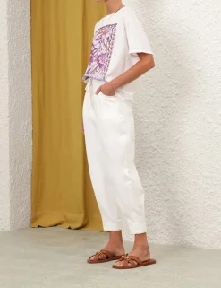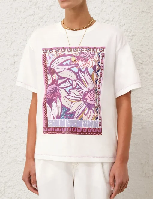 The Acadian Printed Relaxed Tee In Light Cream From Our Resort Swim 2024 Collection. A Cotton Tee Featuring A Zimmermann Print.- Cotton Tee