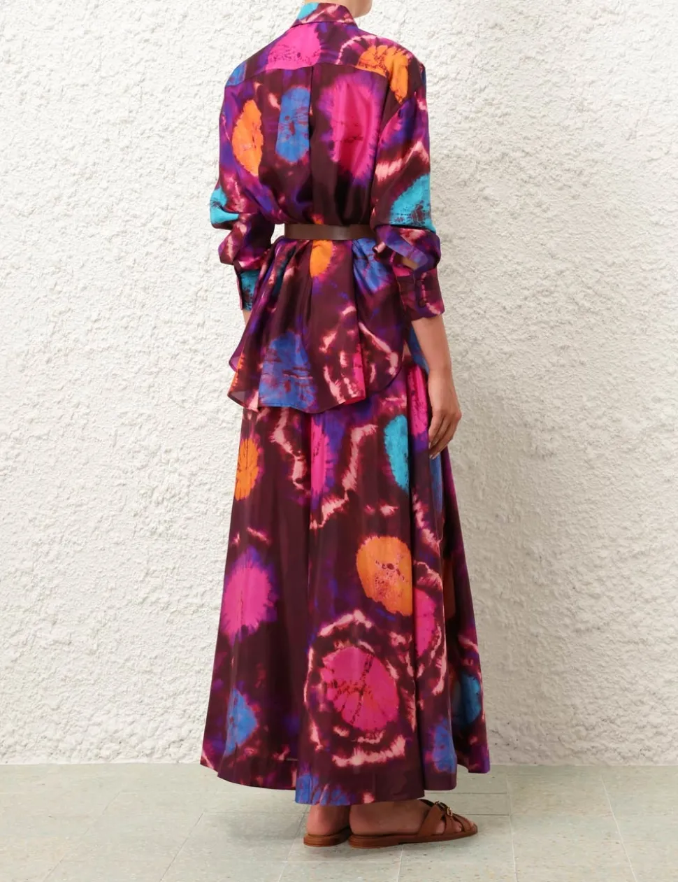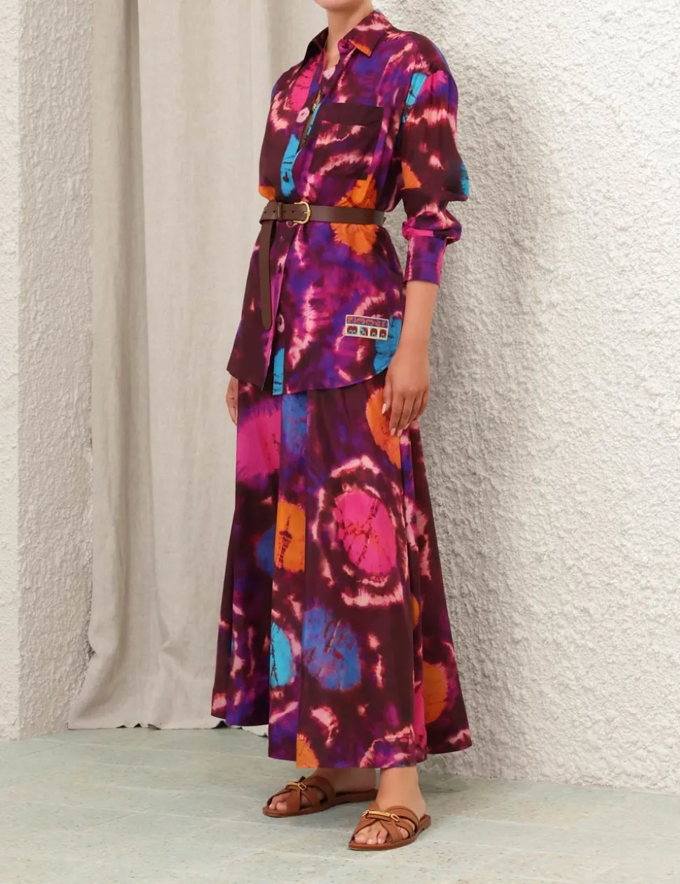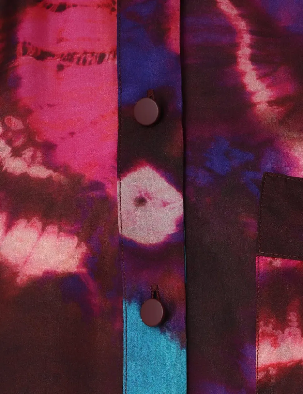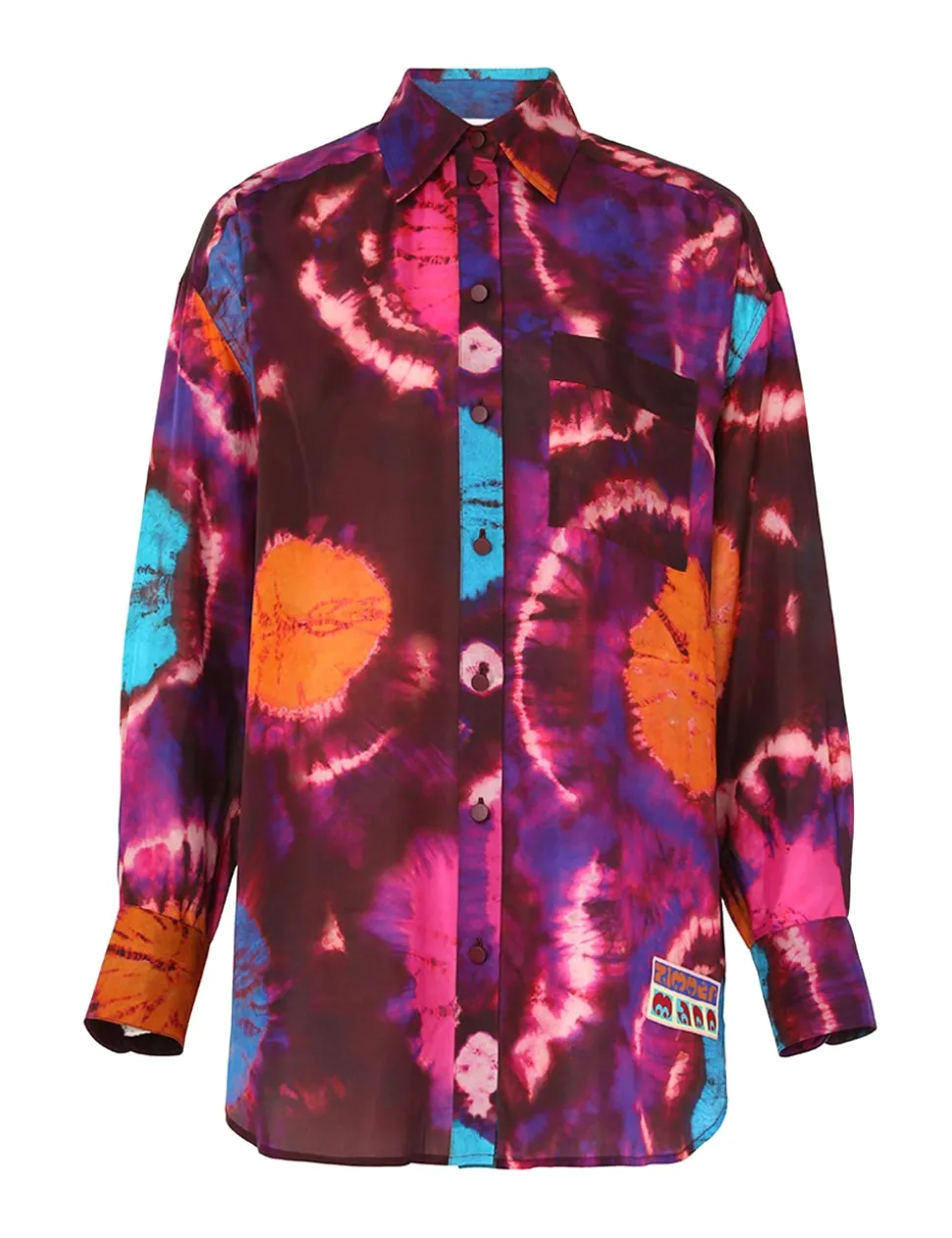 The Acadian Relaxed Shirt In Tie Dye Multi From Our Resort Swim 2024 Collection. A Long Sleeve Silk Shirt Featuring Buttons Down The Centre Front And On The Cuffs.- Printed Silk Shirt