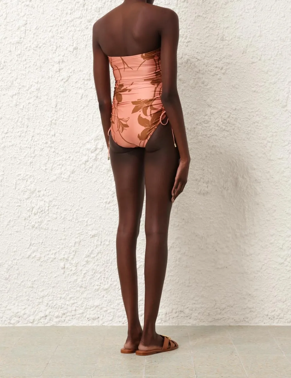The Acadian Ruched Side 1Pc In Coral/Tan Floralfrom Our Resort Swim 2024 Collection. A Lycra One Piece Featuring Ruched Sides, A Shelf Bra, Gripper Elastic Along The Chest And Detachable Straps.- Lycra One Piece