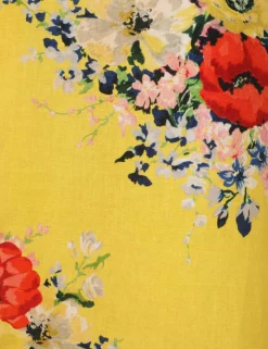 The Alight Asymmetric Midi Dress In Yellow Floral From Our Resort Swim 2024 Collection. A Linen Midi Dress Featuring A One Shoulder Bodice With A Bow Detail.- Linen Midi Dress