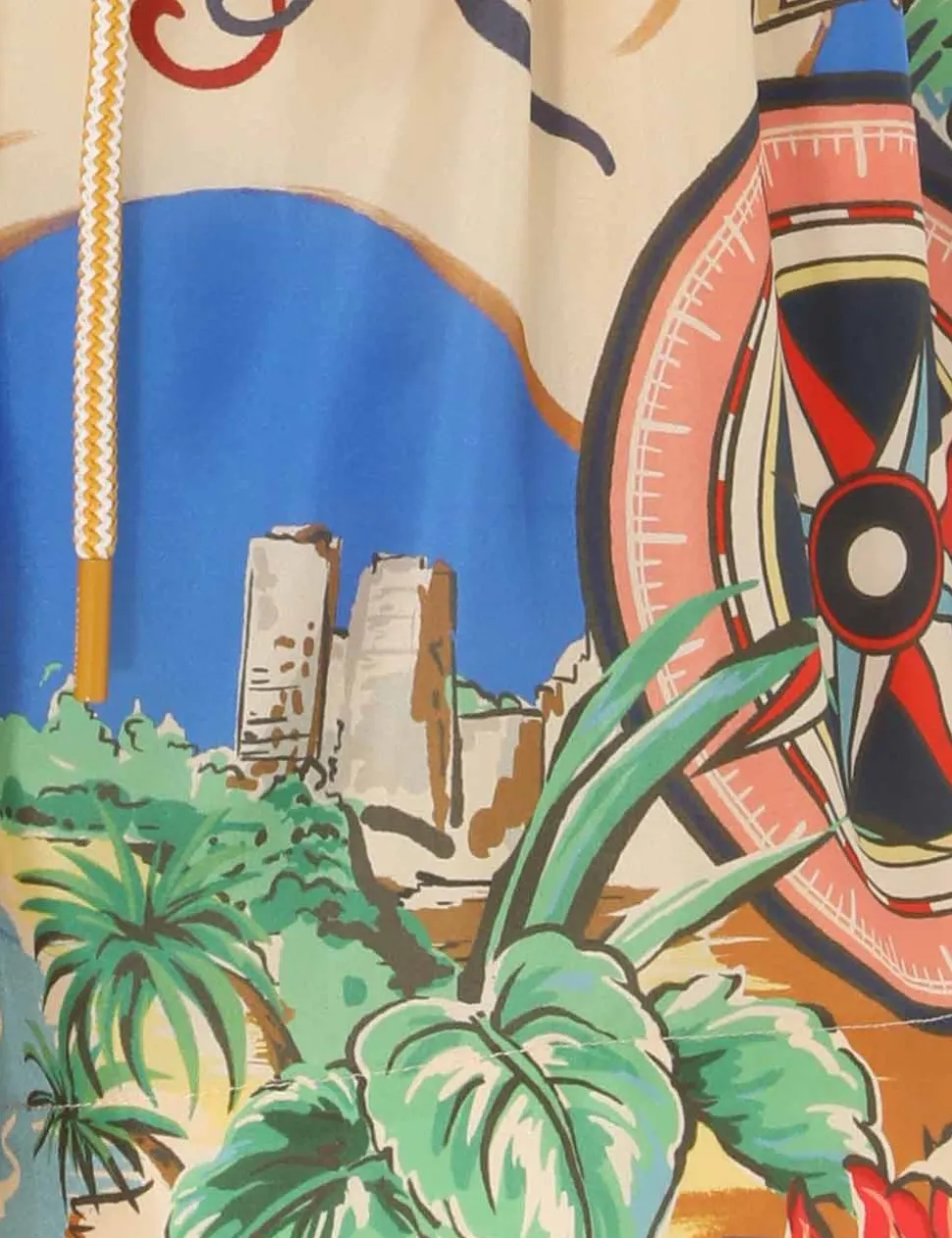 The Alight Draw Waist Short In Nautical Map From Our Resort Swim 2024 Collection. A Silk High Waisted Short Featuring A Placement Print And An Elasticated Waistband.- Placement Print Silk Short