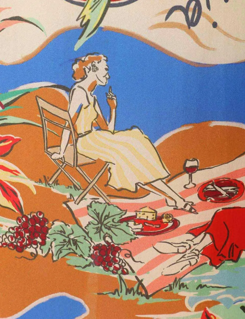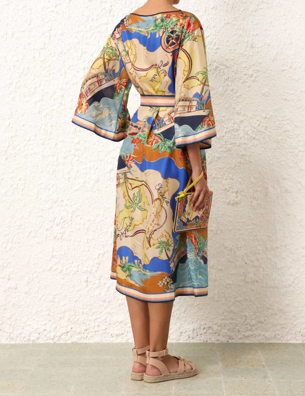 The Alight Midi Dress In Nautical Map From Our Resort Swim 2024 Collection. A Silk Wide Sleeve Midi Dress Featuring A Removable Self Belt, Placement Print And A Contrast Bind.- Silk Midi Dress