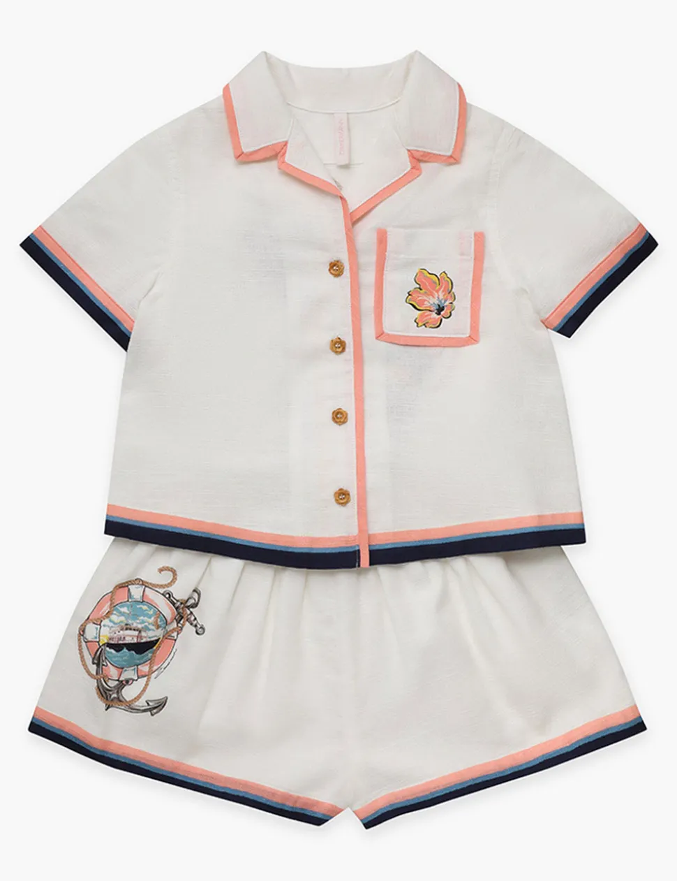 The Alight Relaxed Shirt In Ivory Multi From Our Resort Swim 2024 Collection. A Cotton Button Up Shirt With Short Sleeves, A Classic Collar And Chest Pocket.- Cotton