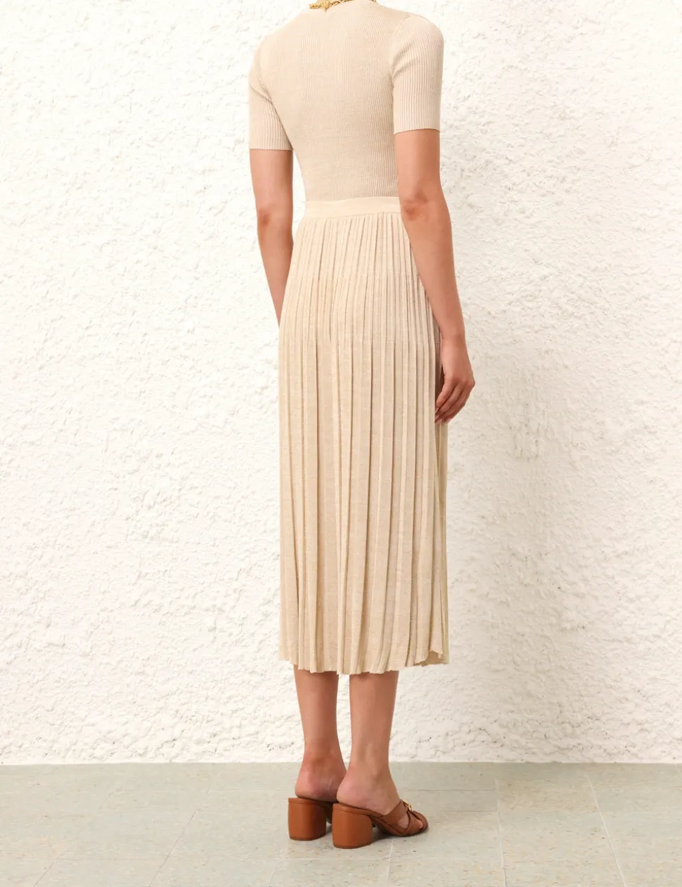 The Alight Rib T-Shirt In Cream Lurex From Our Resort Swim 2024 Collection. A Slim Fit Knit Tee Featuring Short Sleeves And Ribbing Throughout.- Ribbed Knit