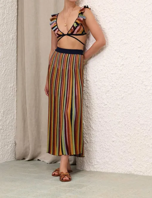 The Alight Lurex Stripe Midi Skirt In Lurex Multi From Our Resort Swim 2024 Collection. A Midi Skirt Constructed From A Contrasting Lurex Knit.- Knit Midi Skirt