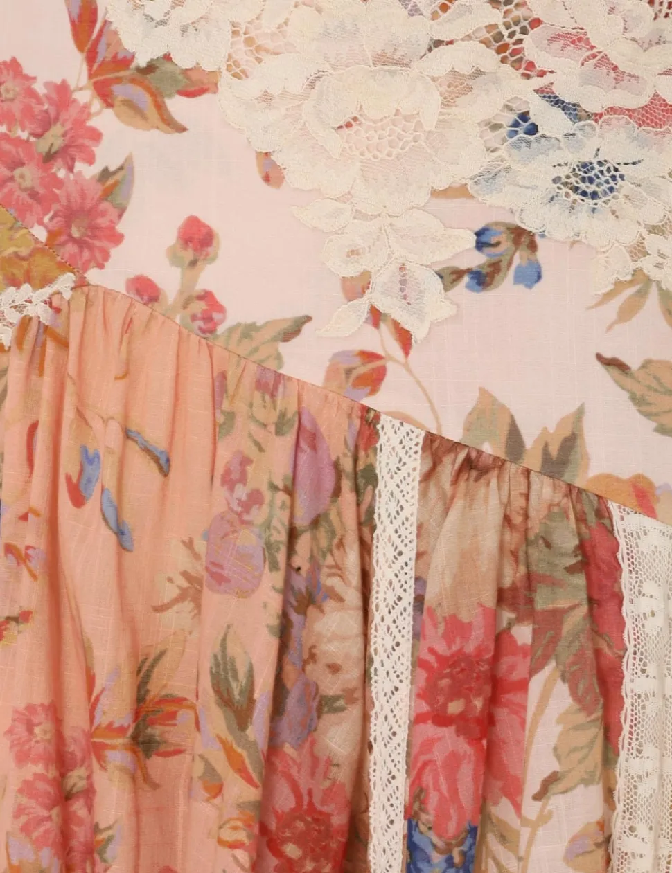 The August Asymmetric Skirt In Spliced From Our Resort Swim 2024 Collection. A Spliced Midi Skirt Featuring Scallop Edge And Lace Trims Throughout.- Cotton Midi Skirt
