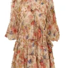 The August Billow Frill Mini Dress In Cream Floral From Our Resort Swim 2024 Collection. A Mini Dress Featuring A V-Neckline With Internal Buttons And Frills Throughout.- Viscose Mini Dress