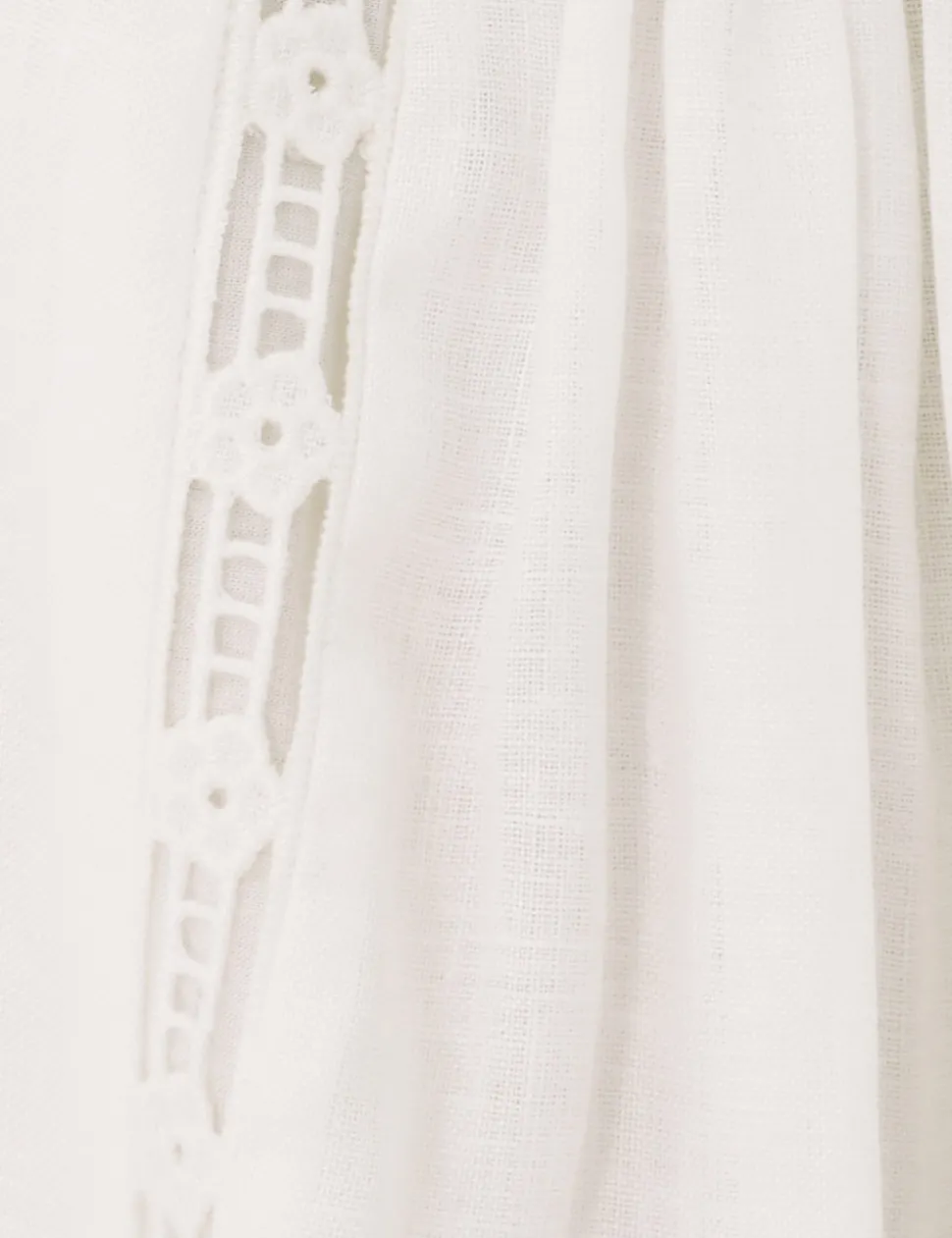 The August Plunge Mini Dress In Ivory From Our Resort Swim 2024 Collection. A Linen Long Sleeve Dress Featuring A Plunging Neckline And Spaghetti Loops Along The Centre Front.- Long Sleeve Mini