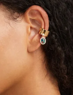 The Austral Huggie In Gold/Green From Our Fall 2023 Collection, Luminosity. A Gold Plated Earring Featuring A Synthetic Opal Stone.- 20Kt Gold Plated