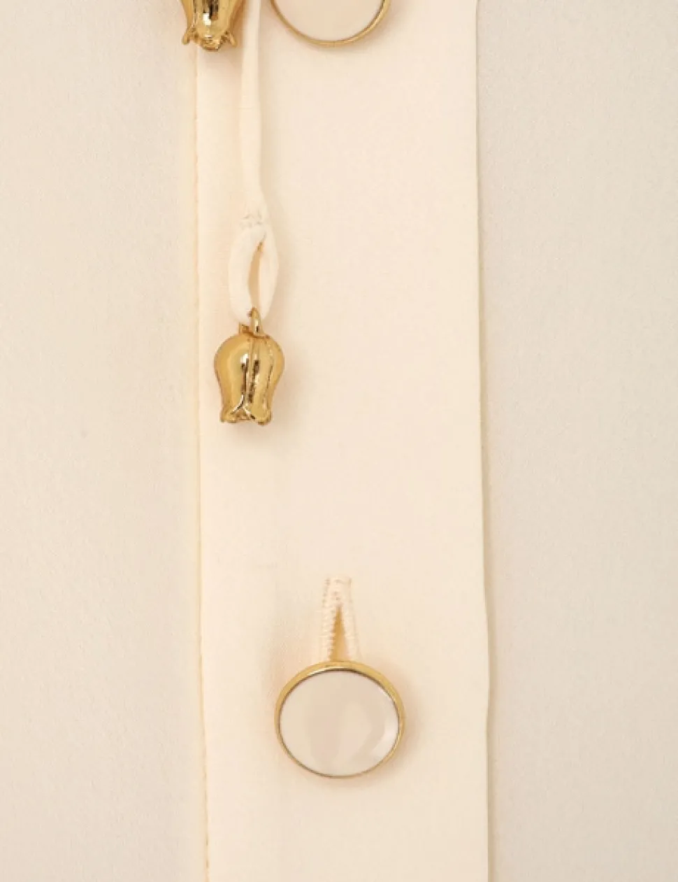 The Blouson Shirt In Cream From Our Resort 2024 Collection, Matchmaker. A Shirt Featuring A Blouson Sleeve, Buttons Down The Centre Front And A 3D Moulded Flower Tie.- Classic Shirt Silhouette