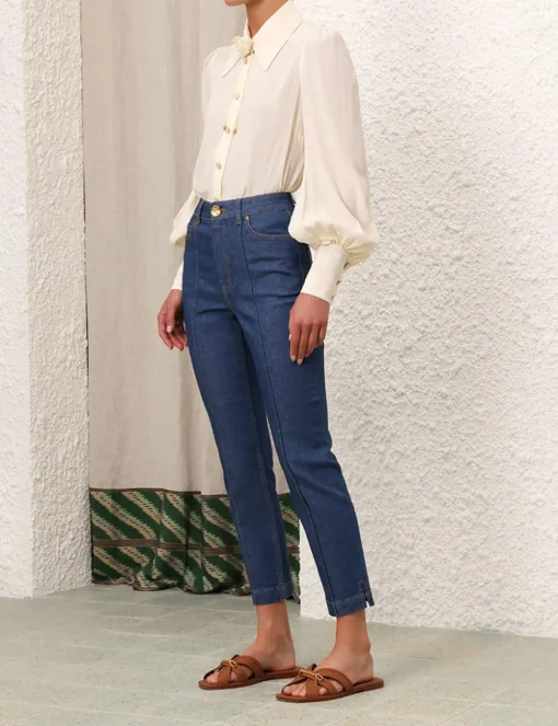The Blouson Shirt In Cream From Our Resort 2024 Collection, Matchmaker. A Shirt Featuring A Blouson Sleeve, Buttons Down The Centre Front And A 3D Moulded Flower Tie.- Classic Shirt Silhouette