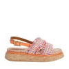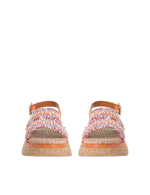 The Braided Strap Flatform In Orange From Our Summer Swim 2023 Collection. An Espadrille Platform Slide Featuring Braided Straps With Contrast Raffia.- Made In Spain