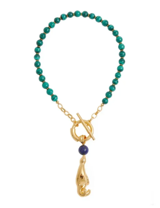 The Carnival Seal Charm Necklace In Multi From Our Spring 2023 Collection, Wonderland. A Gold Plated Beaded Necklace Featuring Semi Precious Stones And A Custom Seal Pendant.- 20K Gold Plated
