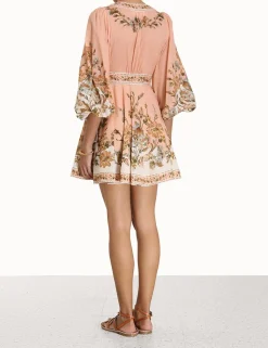 The Chintz Wrap Mini Dress In Pink Daisy Floral From Our Summer Swim 2023 Collection. A Cotton Mini Dress Featuring A Wrap Front Silhouette And A Self Tie Belted Waist.- Cotton