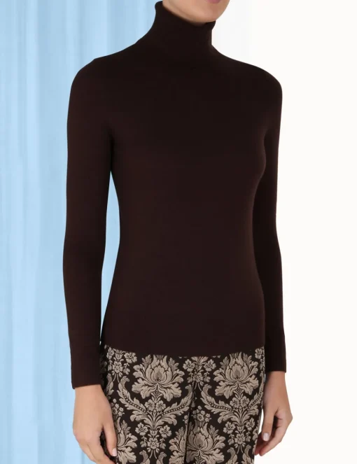 The Classic Turtle Neck Sweater In Chocolate From Our Fall 2023 Collection, Luminosity. A Long Sleeve Knitted Sweater.- Long Sleeve Knit