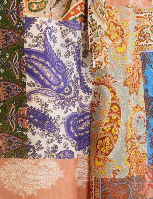 The Devi Relaxed Pant In Patch Paisley From Our Summer Swim 2023 Collection. A Silk Wide Leg Pant Featuring A Draw String Elasticated Waist Band.- Silk Habotai