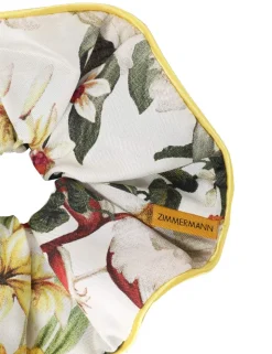 The Double Faced Silk Scrunchie In Ivory Palm From Our Resort 2024 Collection, Matchmaker. A Silk Scrunchie Featuring Contrast Piped Edges.- Silk Scrunchie