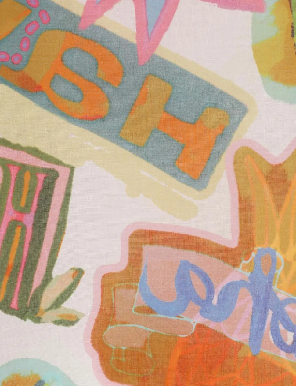 The Fringe Cotton Pareo In Hawaii From Our Holiday 2023 Edit. A Large Rectangle Pareo Featuring Frayed Edges And A Placement Print Throughout.- Made In Italy