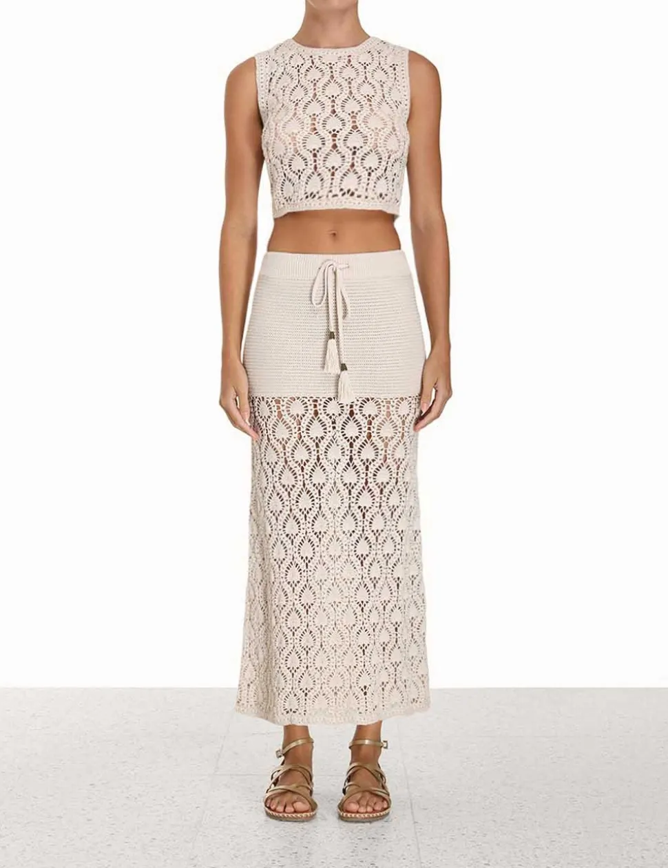 The Ginger Hand Crochet Tank In Cream From Our Summer Swim 2023 Collection. A Pull On Style Crochet Tank With A Contrast Crochet Border.- Hand Crochet Tank