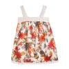 The Ginger Knit Trim Dress In Ivory Floral From Our Summer Swim 2023 Collection. A Mini Dress Featuring A Crochet Bodice And Crochet Contrast Trims, Finished With A Placement Print Through The Skirt.- Crochet Mini Dress