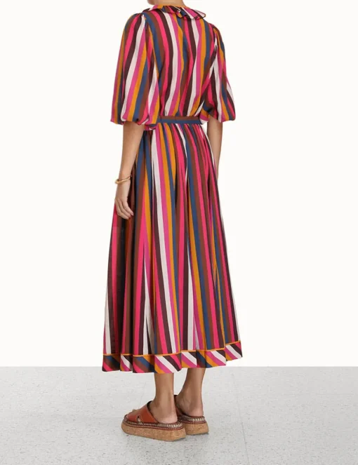 The Ginger Ruffle Neck Top In Multi Stripe From Our Summer Swim 2023 Collection. A Cotton Top Featuring Blouson Sleeves And A Ruffled Neckline.- Cotton Top