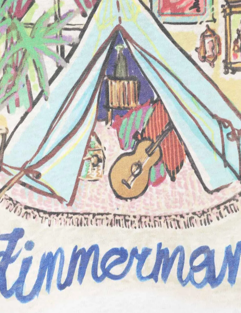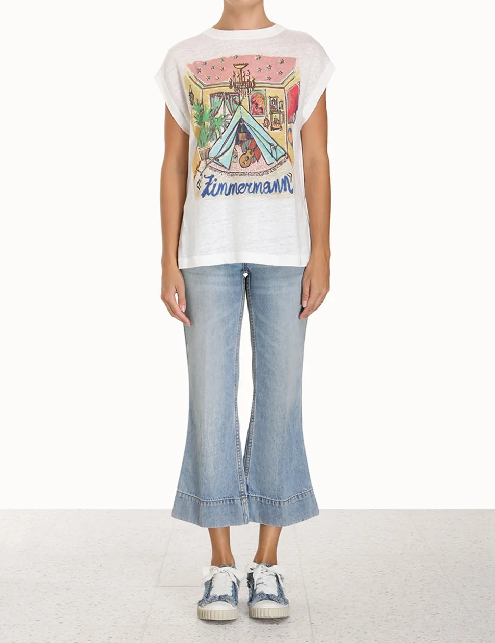 The Ginger Sleeveless Tee In Ivory From Our Summer Swim 2023 Collection. A Round Neck, Short Sleeve Tee With A Ribbed Neckline And Zimmemrann Artwork At Centre Front.- Linen