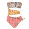 The Junie Lace Up Cutout 1Pc In Spliced From Our Resort Swim 2024 Collection. A Shiny Lycra One Piece Featuring Body Cutouts.- Shiny Lycra One Piece