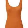 The Junie Scoop Neck Tank In Tan From Our Resort Swim 2024 Collection. A Ribbed Knit, Fitted Tank With A Scoop Neckline At The Front And Back.- Fitted, Ribbed Tank