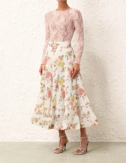 The Lace Bodysuit In Blush From Our Resort 2024 Collection, Matchmaker. A Lace Bodysuit Featuring A Crew Neck And Long Sleeves.- Stretch Lace