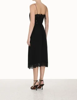 The Lace Panel Slip Midi In Black From Our Fall 2023 Collection, Luminosity. A Slip Midi Dress Constructed From Lace Panels.- Slip Midi Dress