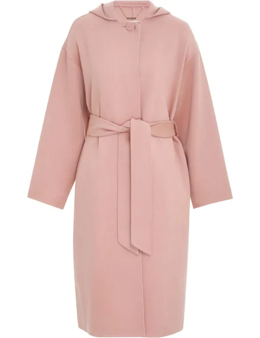 The Luminosity Felted Hooded Coat In Dusty Pink From Our Fall 2023 Collection, Luminosity. A Wrap Style Wool Coat Featuring A Hood And In Seam Pockets.- Wool Coat