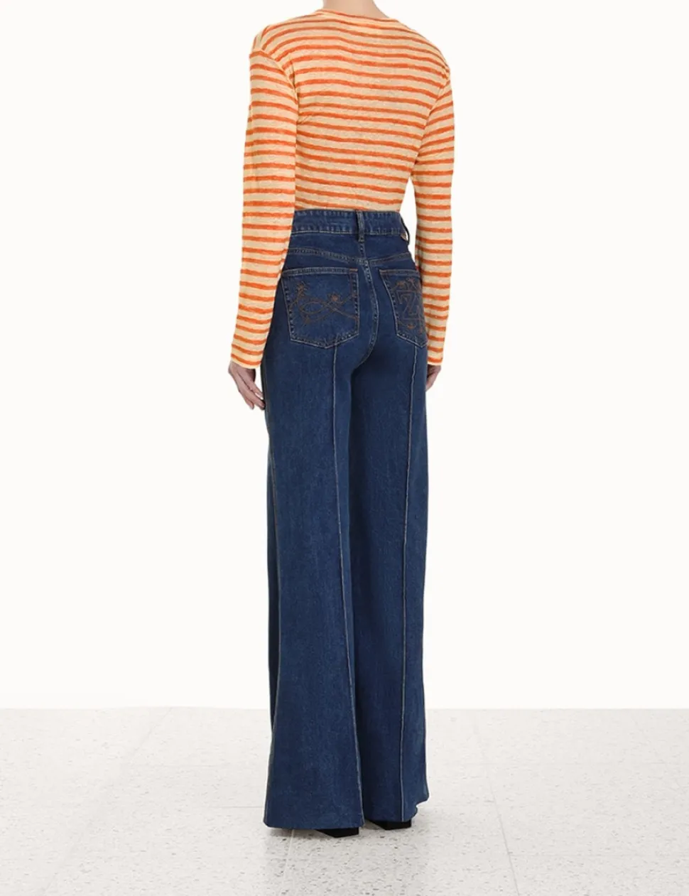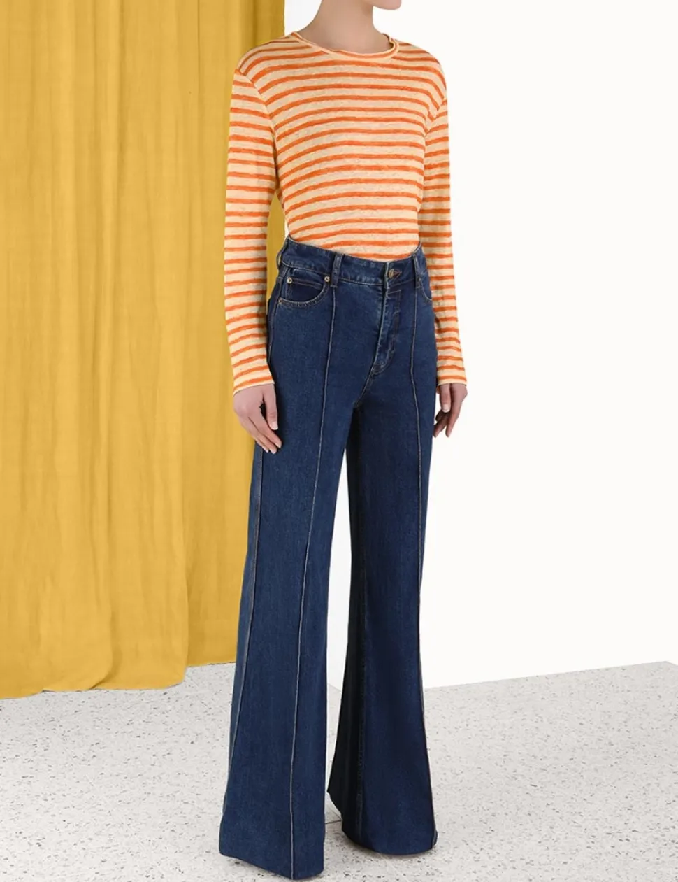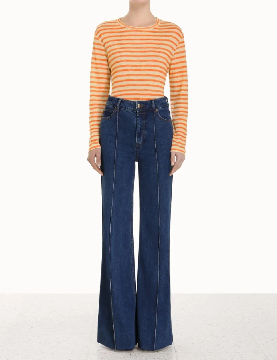 The Luminosity Long Sleeve Tee In Orange Stripefrom Our Fall 2023 Collection, Luminosity. A Linen Tee Featuring A Wide Neckband.- A Linen Long Sleeve Tee