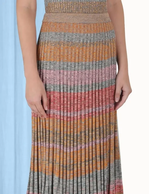 The Luminosity Mouline Skirt In Multi From Our Fall 2023 Collection, Luminosity. A Knitted Skirt Featuring Contrast Panels Of Mouline Yarn.- Knitted Skirt