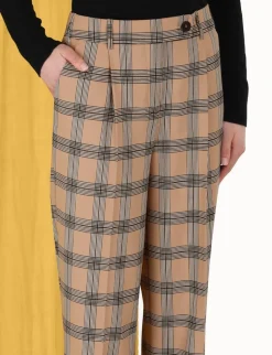The Luminosity Pleat Front Pant In Tan Checkfrom Our Fall 2023 Collection, Luminosity. A Straight Leg Pant Featuring Pleats Down The Centre Front And Side Pockets.- Garden Wool Check Pant
