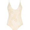 The Luminosity Scoop Neck Bodysuit In Parchment From Our Fall 2023 Collection, Luminosity. A Lace Bodysuit Featuring A Scoop Neck And Back, Finished With Adjustable Straps.- Stretch Lace