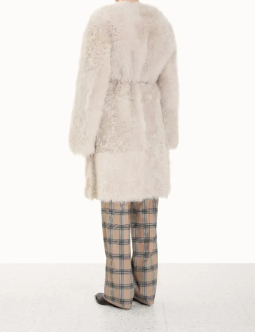 The Luminosity Shearling Coat In Bone From Our Fall 2023 Collection, Luminosity. An Oversized Shearling Coat Featuring Pockets Throughout And A Self Tie Tube Belt .- Shearling Jacket