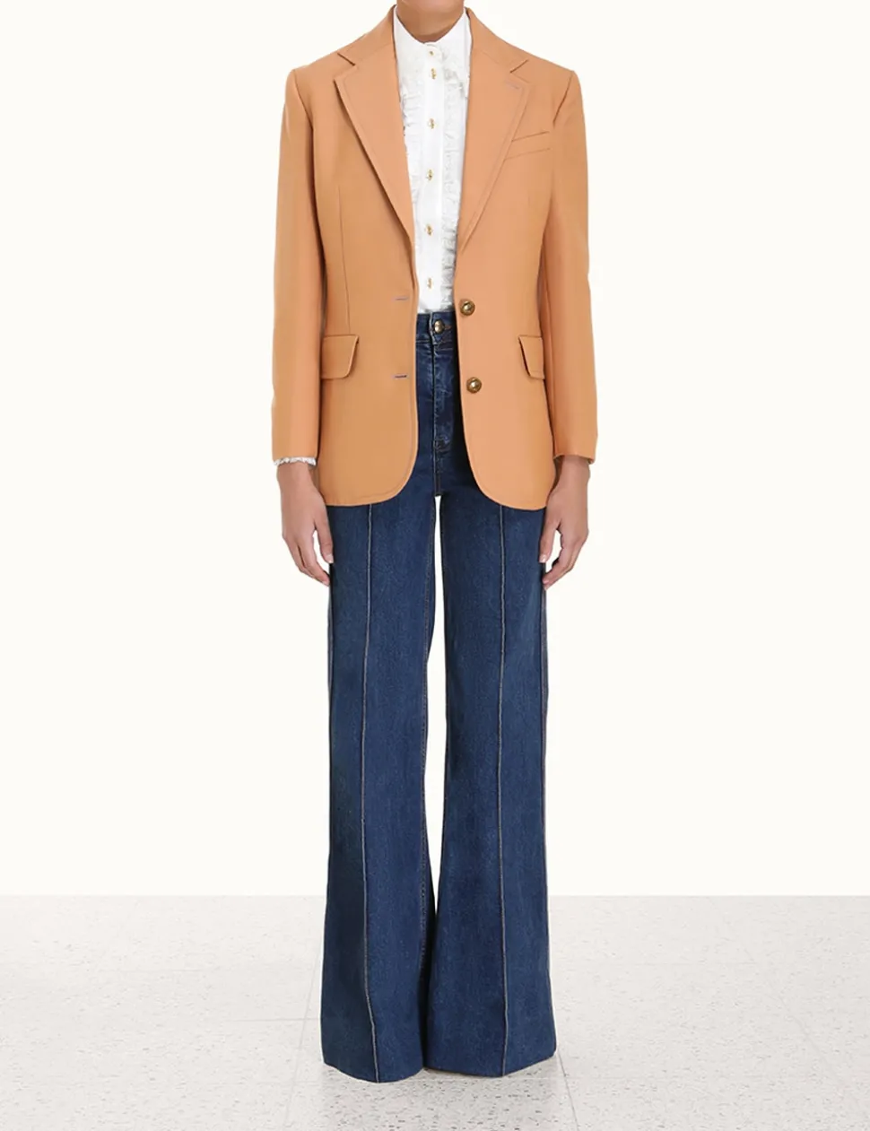 The Luminosity Tailored Jacket In Biscuit From Our Fall 2023 Collection, Luminosity. A Wool Blend Suiting Jacket Featuring Front Patch Pockets, Single Breasted Closure And Topstitching Throughout.- Wool Viscose Jacket