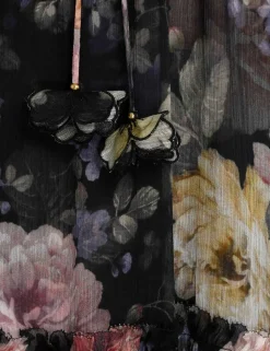 The Luminosity Tubular Midi Dress In Multi Floral Black From Our Fall 2023 Collection, Luminosity. A Silk Midi Dress Featuring Long Fluted Sleeves And Stand Collar, Finished With A Frilled Drop Hem.- Silk Midi Dress