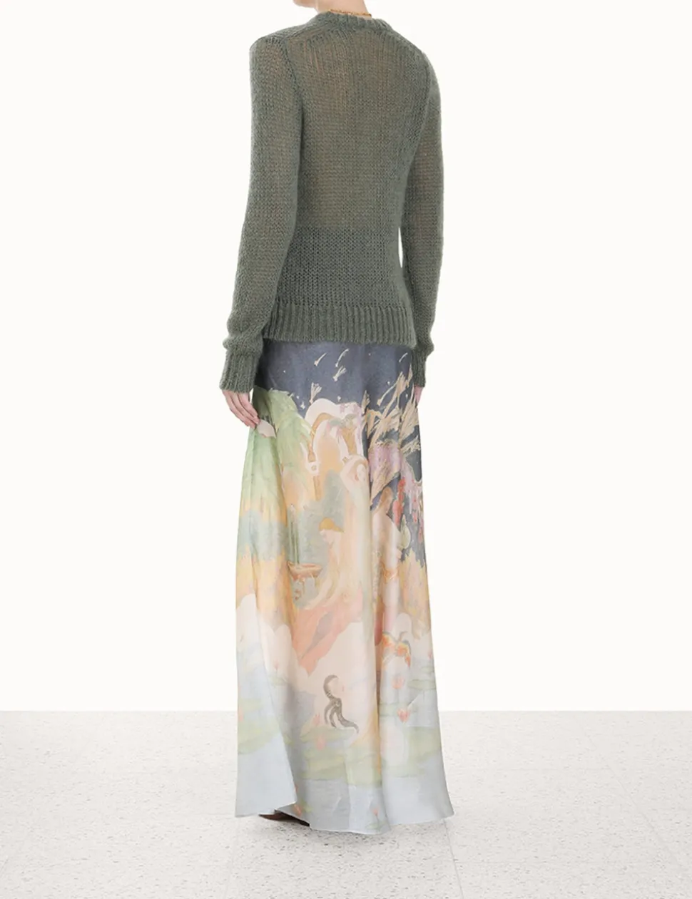 The Lyrical Bias Flare Skirt In Paradise Print From Our Fall 2023 Collection, Luminosity. A Silk Satin Organza Skirt Featuring A Bias Cut And Elastic Waist.- Bias Maxi Skirt