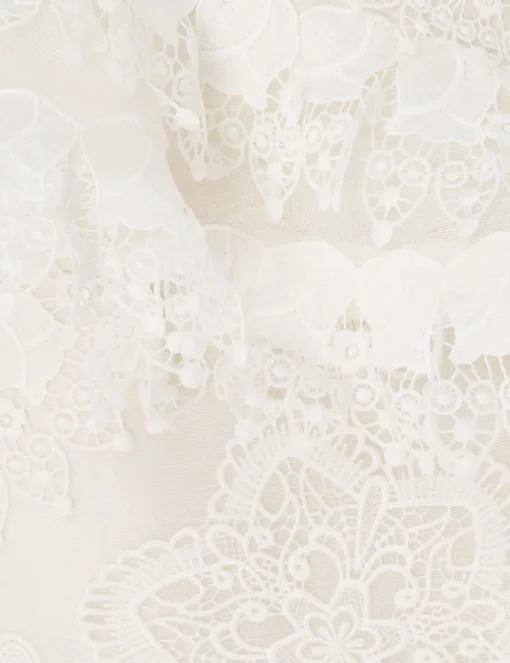 The Matchmaker Doily Skirt In Ivory From Our Resort 2024 Collection, Matchmaker. A Silk Linen Organza Skirt Featuring A Waterfall Ruffle And Doily Applique Throughout.- Silk Linen Skirt