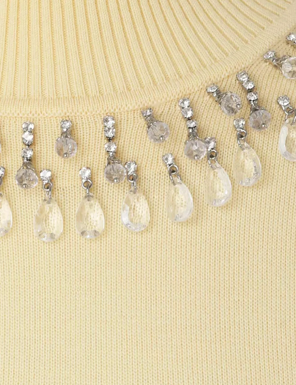 The Matchmaker High Neck Crop Top In Lemon From Our Resort 2024 Collection, Matchmaker. A Cashmere Crop Top Featuring A Crystal Jewel Trim Along The Neckline.- Cashmere Top