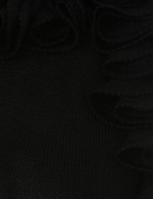 The Ruffle Neck Top In Black From Our Resort 2024 Collection, Matchmaker. A Ribbed Knit Tank Top Featuring A Halter Neck And Statement Frill Details Throughout.- Rib Knit Tank