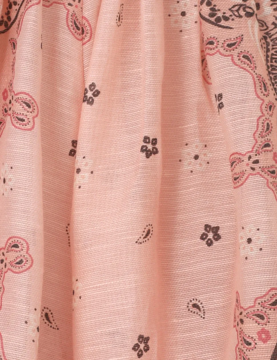 The Matchmaker Structured Mini In Pink Bandana From Our Resort 2024 Collection, Matchmaker. A Silk Linen Mini Dress Featuring A Plunging Neckline And Bow Detail, Finished With A Full Mini Skirt.- Silk Linen Mini Dress