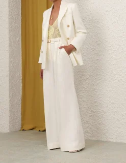 The Matchmaker Tailored Jacket In Ivory From Our Resort 2024 Collection, Matchmaker. A Linen Blazer Featuring Zig Zag Top Stitching Throughout, Functional Pockets With Jets, And Buttons At The Front Opening.- Linen Blazer