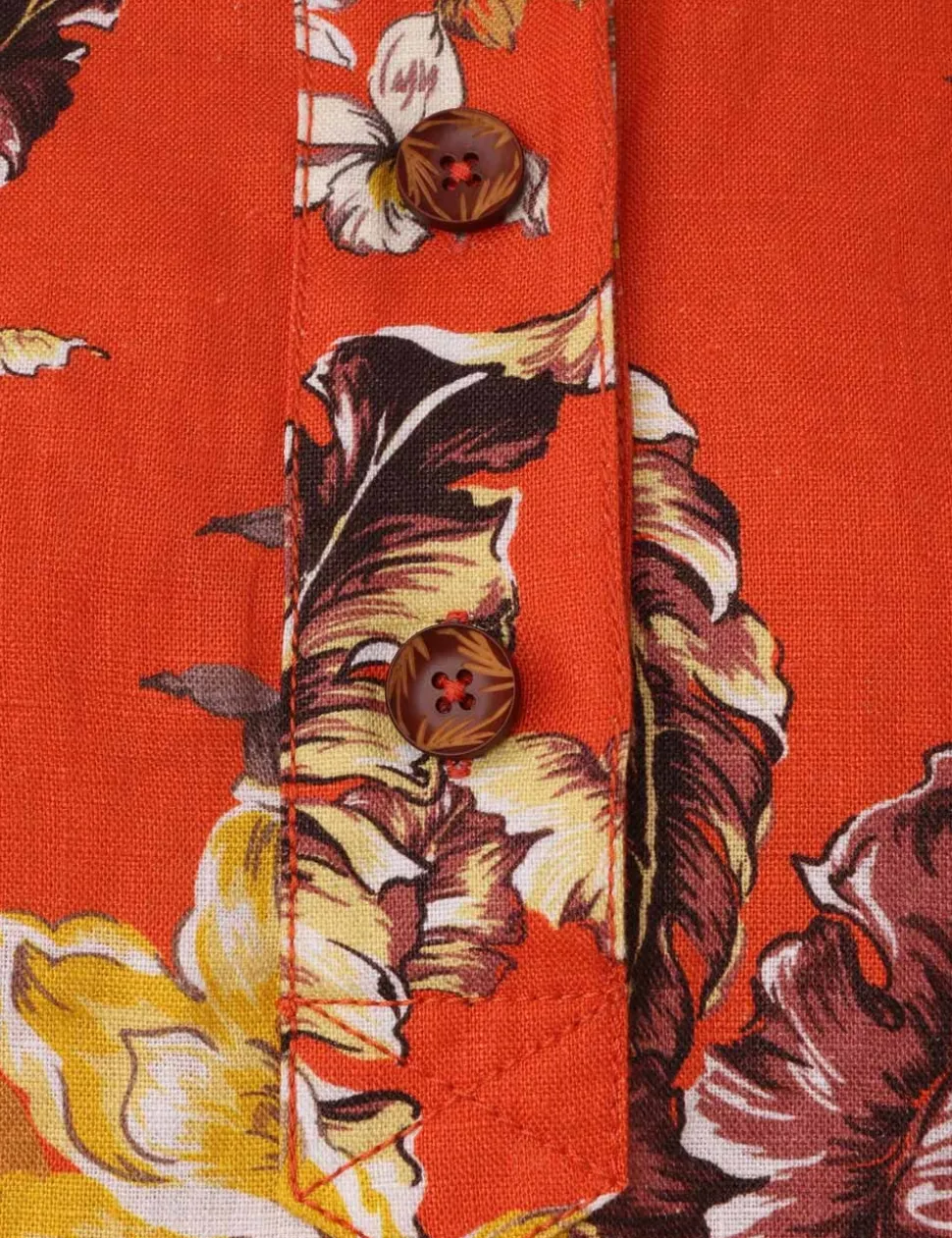 The Matchmaker Tunic Dress In Red Tropical Floral From Our Resort 2024 Collection, Matchmaker. A Linen Tunic Dress Featuring Wide Sleeves And A Placement Print Throughout.- Linen Mini Dress