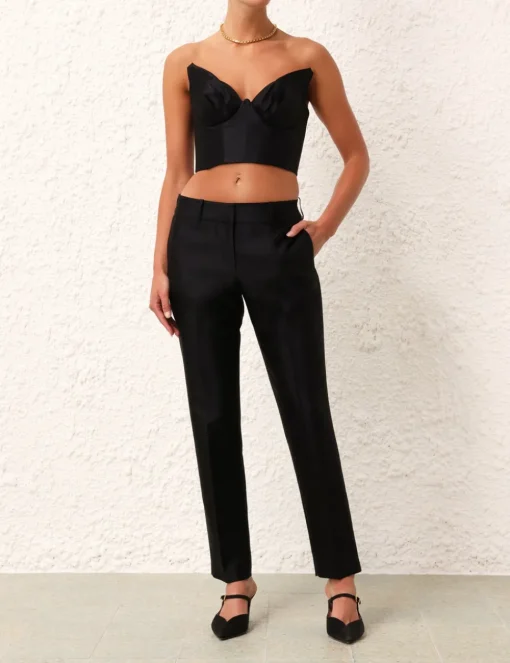 The Matchmaker Tuxedo Pant In Black From Our Resort 2024 Collection, Matchmaker. A Silk Wool Pant Featuring Side Seam Front Pockets And Belt Loops.- Silk Wool Pant
