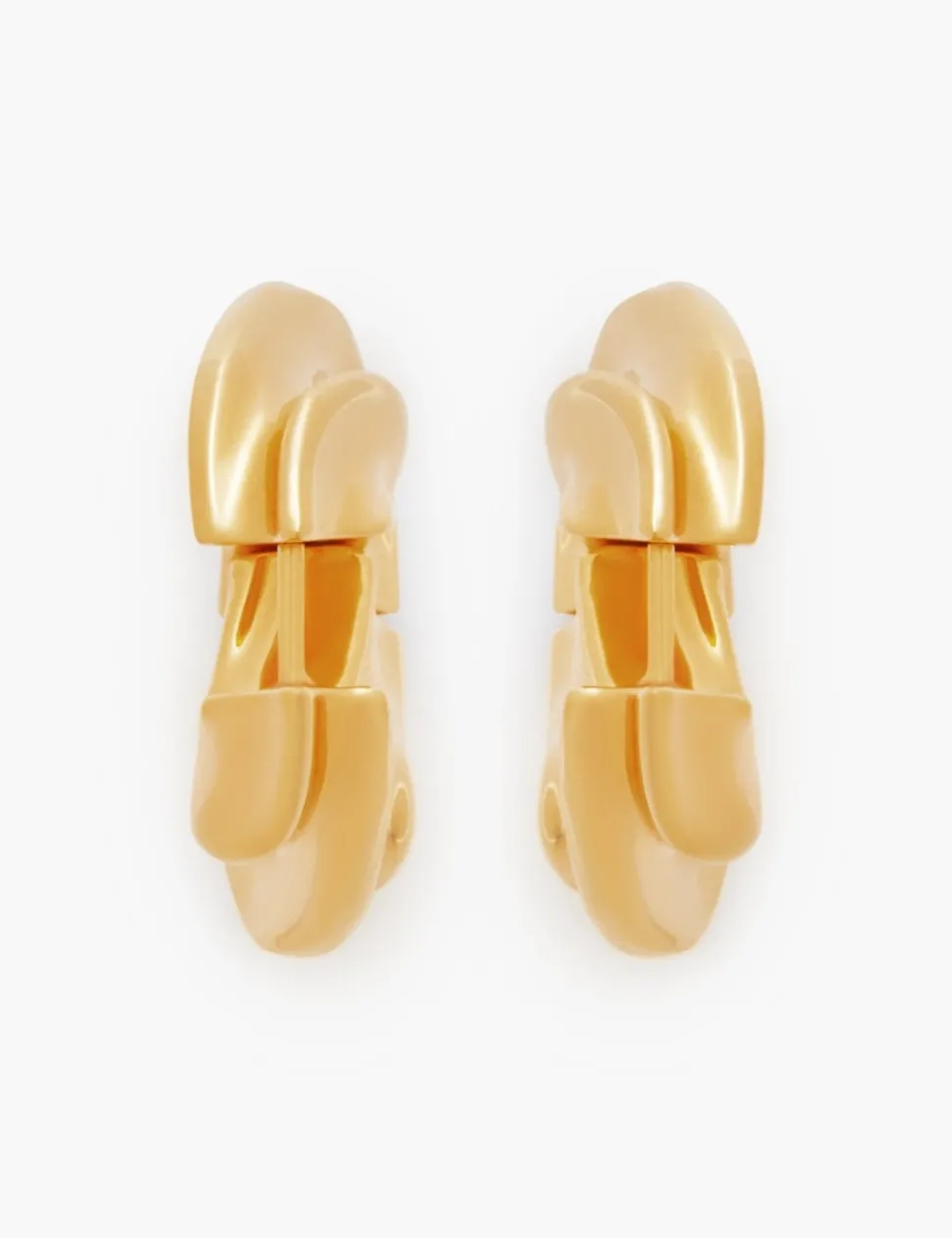 The Paint Stroke Hoops In Gold From Our Fall 2023 Collection, Luminosity. A Gold Plated Hoop Earring Featuring Twist Look Detailing Throughout.- 20Kt Gold Plated Brass