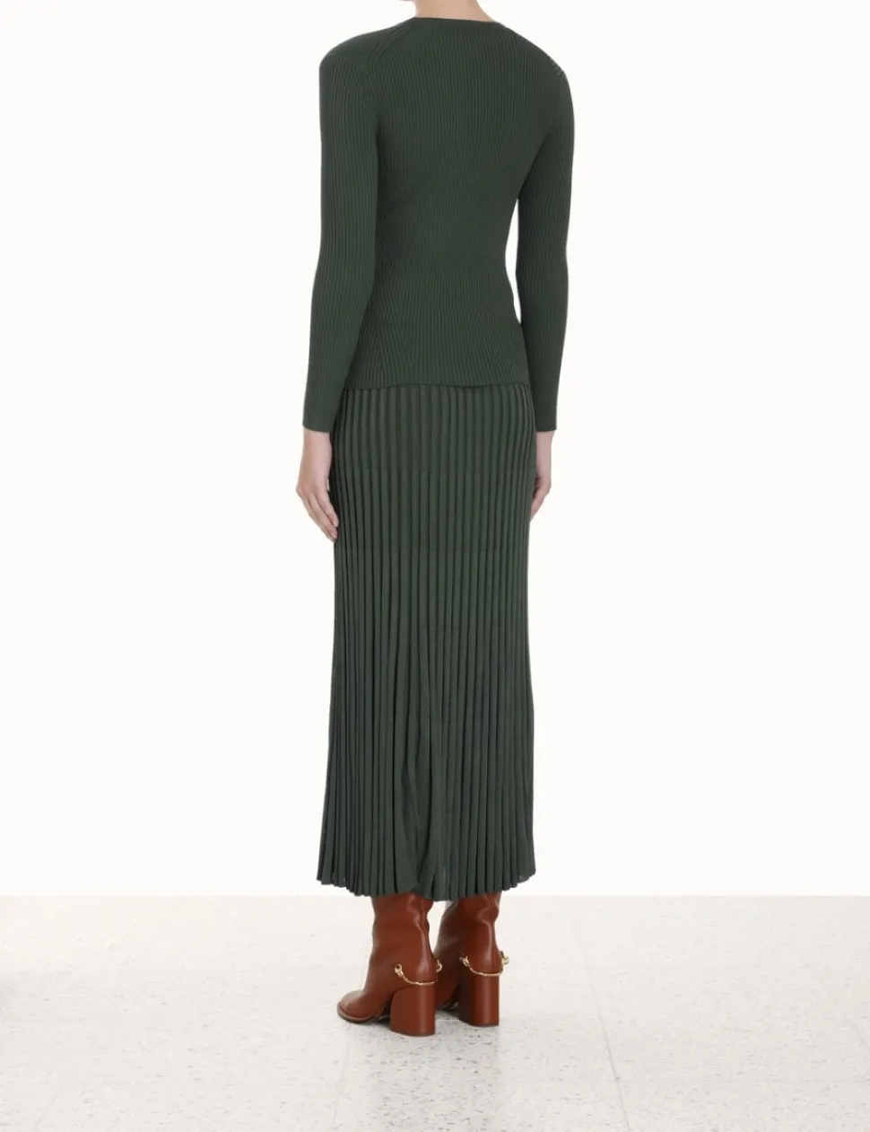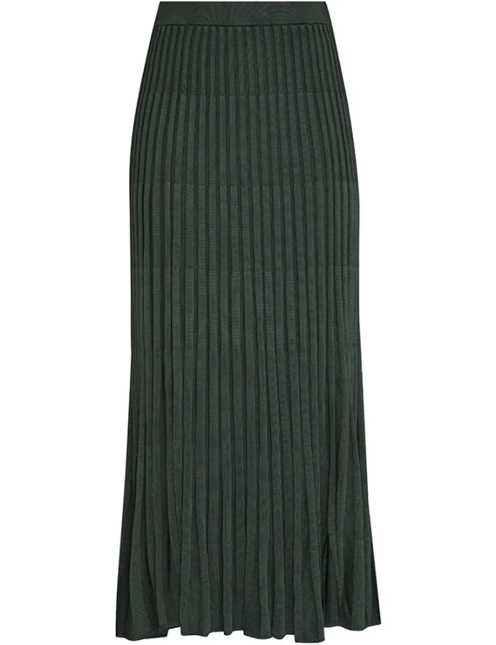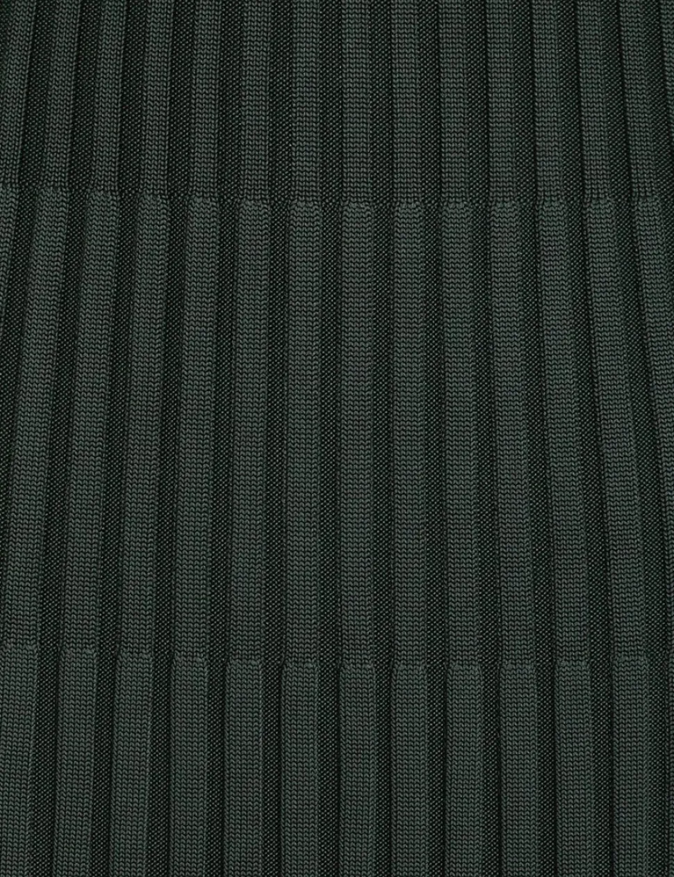 The Pleated Midi Skirt In Olive From Our Fall 2023 Collection, Luminosity. A Midi Skirt Constructed From A Ribbed Knit.- Knitted Midi Skirt