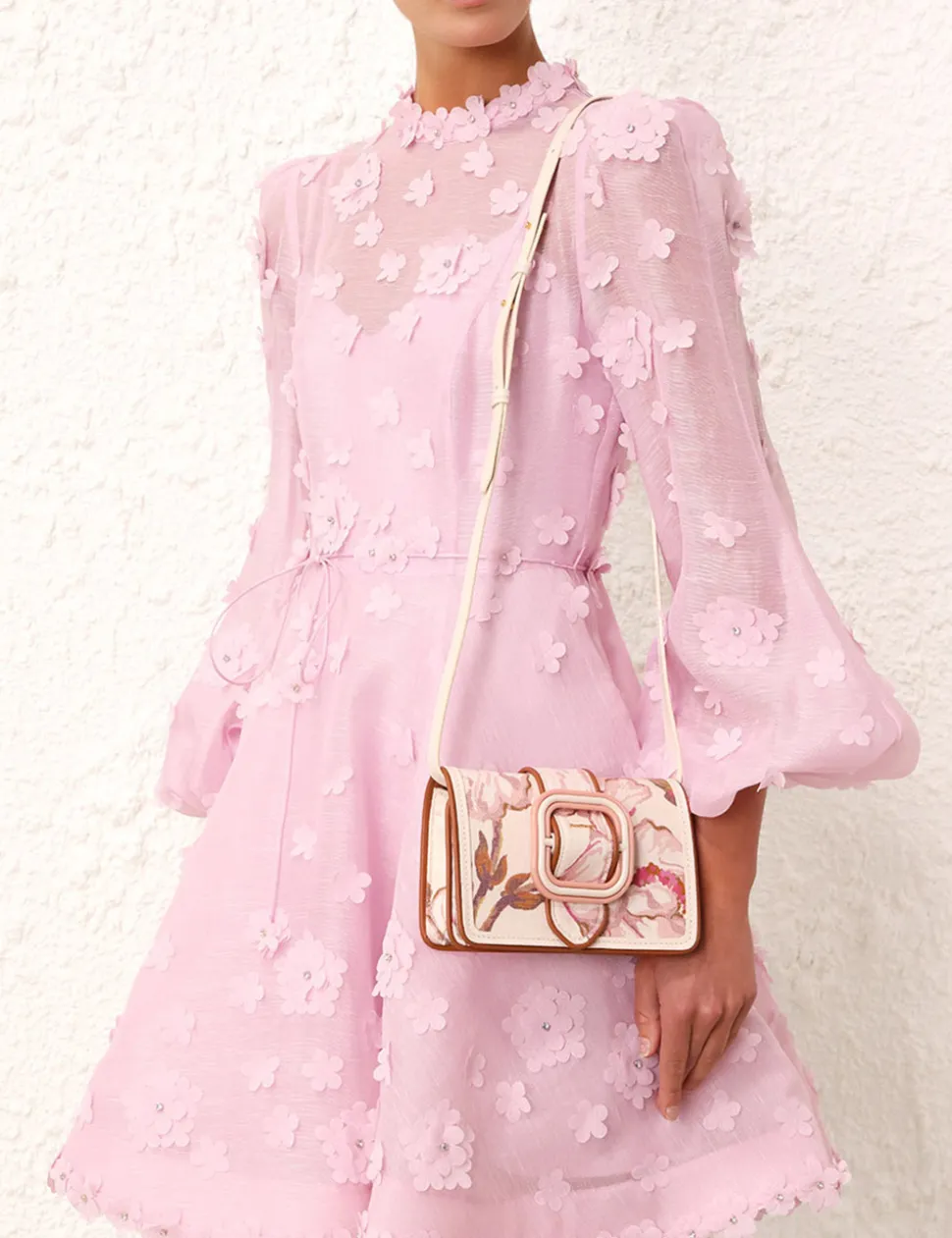 The Printed Small Cross Body Bag In Coral Hibiscus From Our Resort 2024 Collection, Matchmaker. A Small Linen Cross Body Bag Featuring A Buckle Front Design And An Internal Card Pocket.- Linen Cross Body Bag