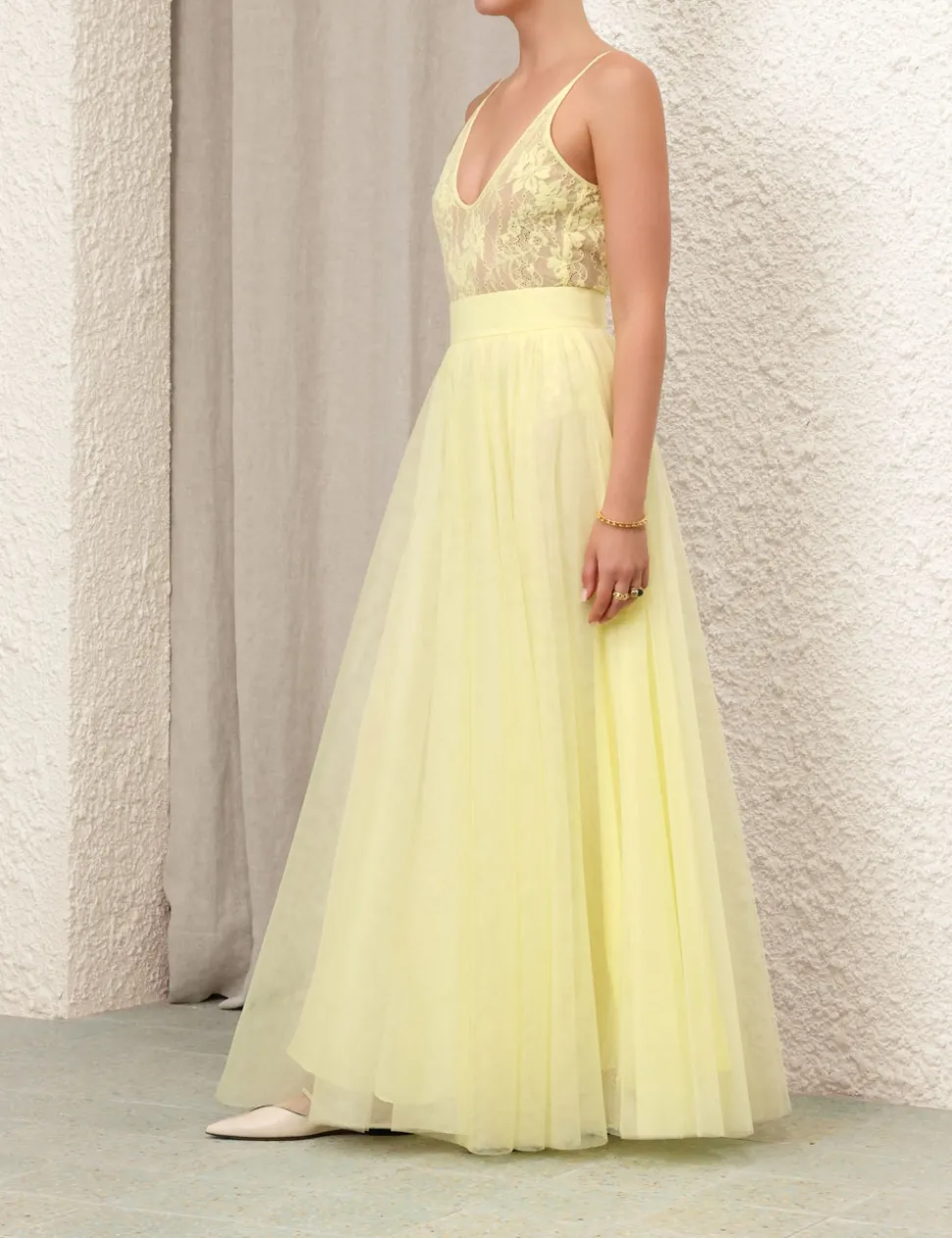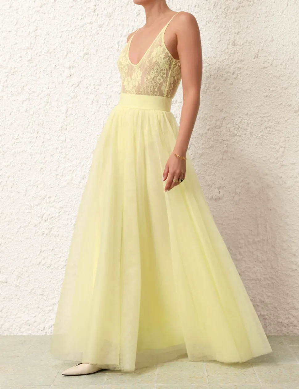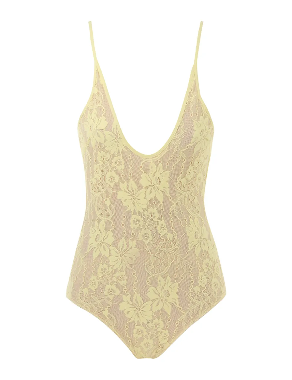 The Scoop Neck Bodysuit In Lemon From Our Resort 2024 Collection, Matchmaker. A Lace Bodysuit Featuring A Scoop Neck And Back, Finished With Adjustable Straps.- Stretch Lace